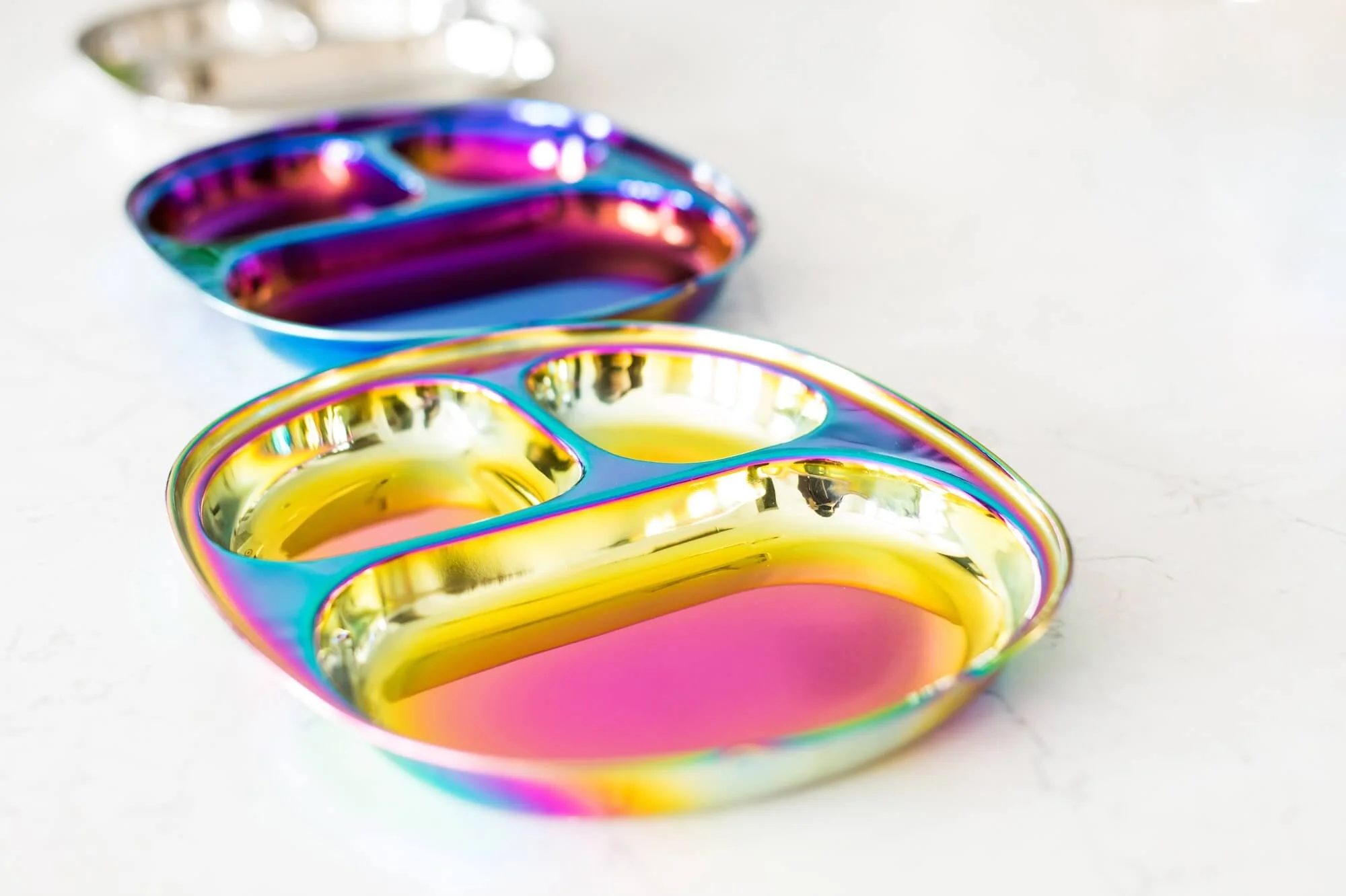 Most colorful metal products are painted or powder-coated, which eventually chips and ends up in a child’s food. Ahimsa uses Physical Vapor Deposition (PVD). This is a high-tech process used in medical implants where titanium vapor is bonded to the steel. The result? Brilliant colors (like their signature Rainbow and Iridescent Blue) that are biocompatible, non-toxic, and will never peel or chip.